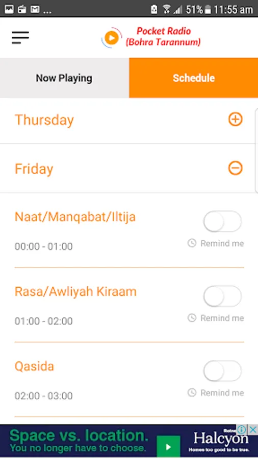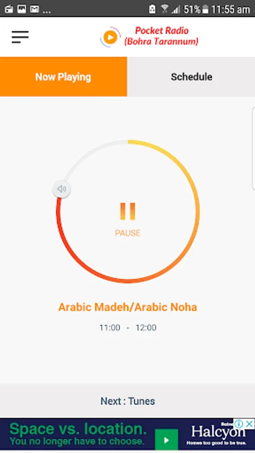 - In rare case, if you see difference in the Program Schedule and currently playing audio, kindly close the app and restart it, it will play the current Program audio.