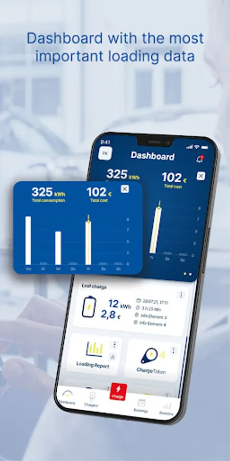 Starting and stopping the charging process: Control your charging station conveniently via the app, saving time for authentication via RFID chip at the parking lot.