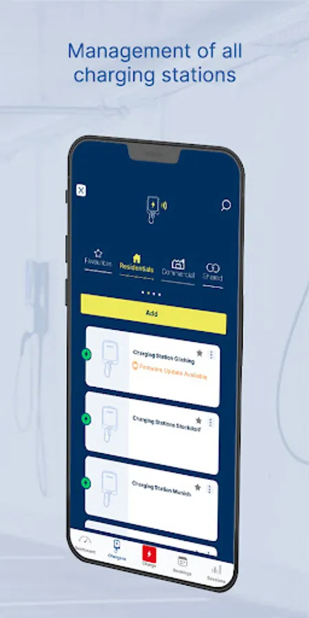 One-time free registration via app: Using the app requires a one-time, free registration. Simply download the app, register yourself, register your charging stations, and off you go.
