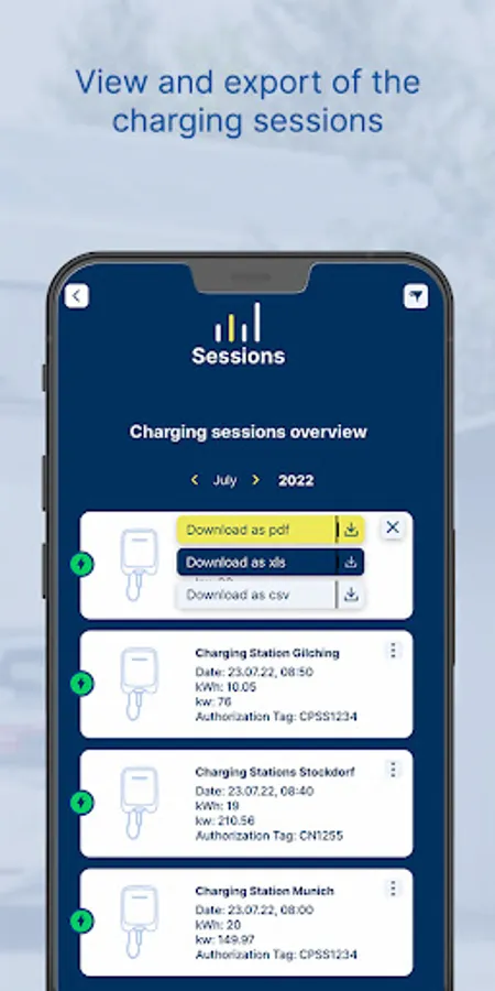 Detailed overview of completed charging processes: In the charging history, you can view the data from all your registered charging stations. Comprehensive information such as charging duration or power consumption per charging process can be retrieved.