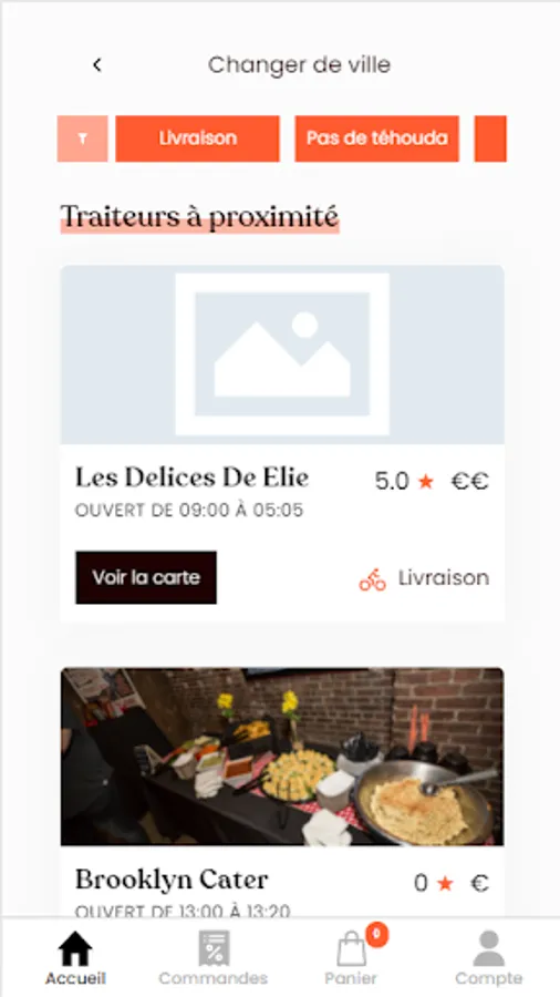 1 - Indicate your order criteria (home delivery, take-out, geolocate yourself, etc.)
