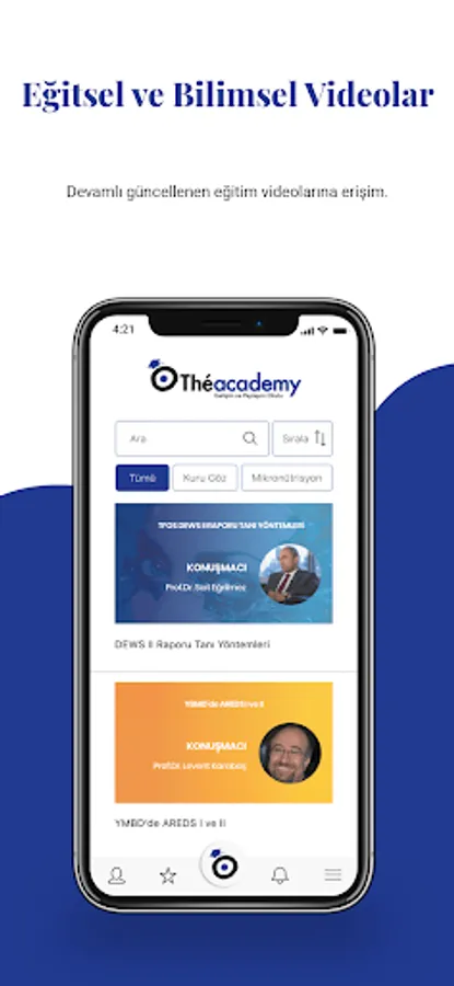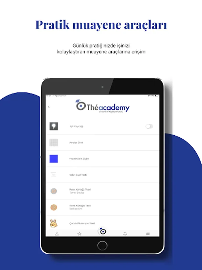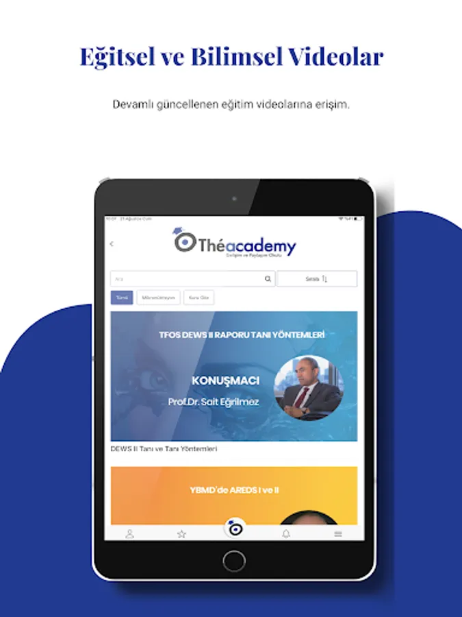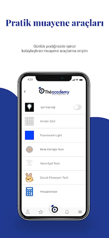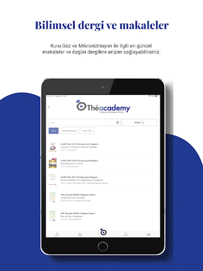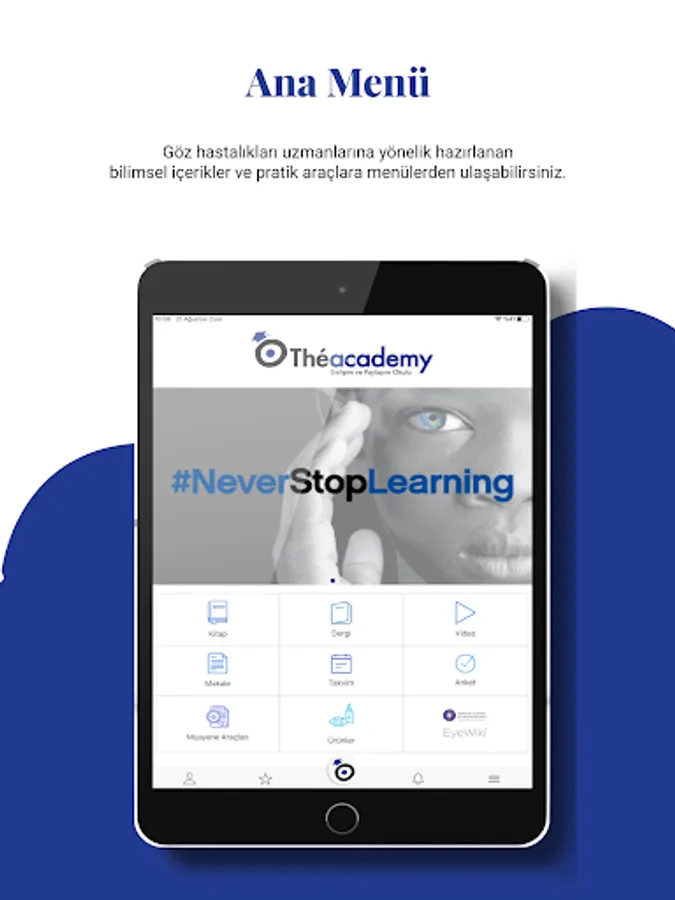 Theacademy mobile application has been prepared to meet the scientific, educational and daily practical needs of ophthalmologists in our country. With its constantly renewed and updated scientific content, it has been presented to the use of healthcare professionals as a mobile application that is always living and developing. Our application is designed to be used on all smartphones and tablets. All contents are prepared in a way that they can be shared and determined in a way to increase the sharing and interaction between ophthalmologists. We offer it to our esteemed physicians.