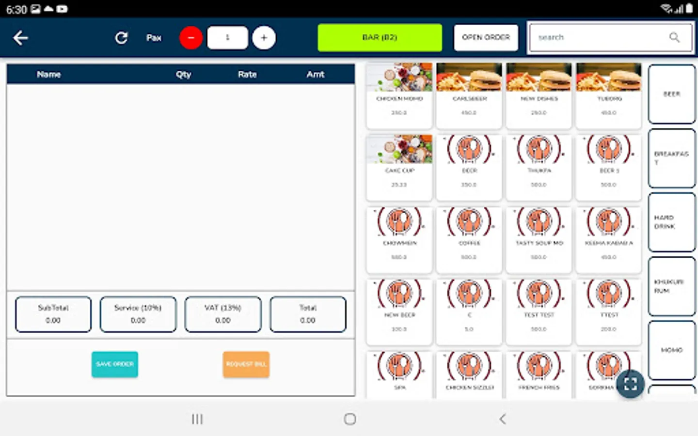 This app is for ordering the food items from mobile/tablet in restaurants.