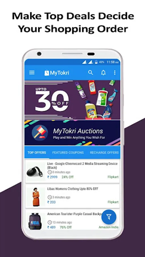 Daily deals and discount coupons: Visit India’s #1 deals website mytokri.com for all shopping products and save money online in India. Our daily deals, loot deals, free coupons, bid auctions and online free stuff are all going to make your day very special. Mytokri App brings all the top retailer deals and sale as Flipkart Offers, Amazon Deals, Snapdeal Coupons, and EBay Deals etc.