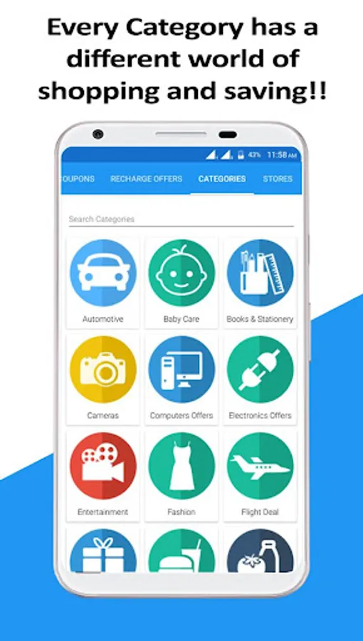 - Shopping Stores: Get the hottest Deals and Coupons from more than 1000+ E-Commerce Stores like EBay, Amazon, Flipkart, Snapdeal, Jabong, Myntra, Shopclues, Zivame, GrouponIndia, Firstcry etc.