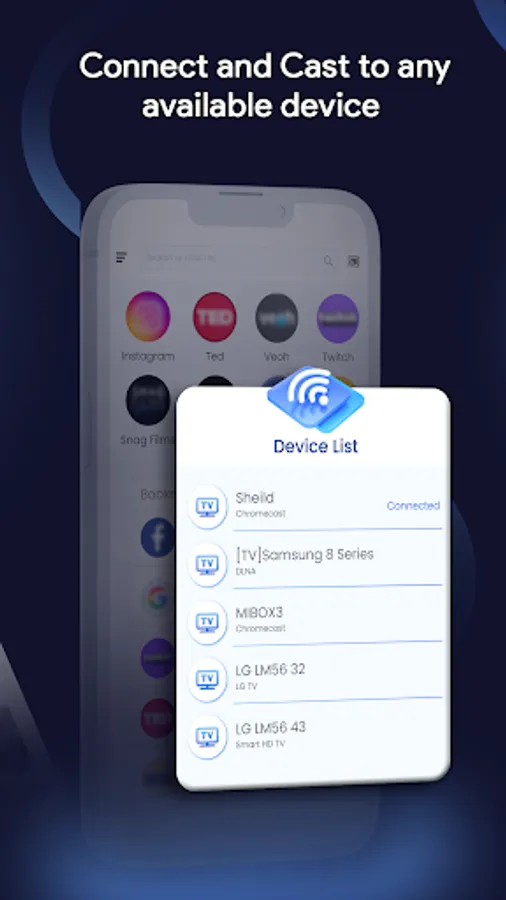 3) Connect to any streaming device of your choice to cast the video, music, image, or document.