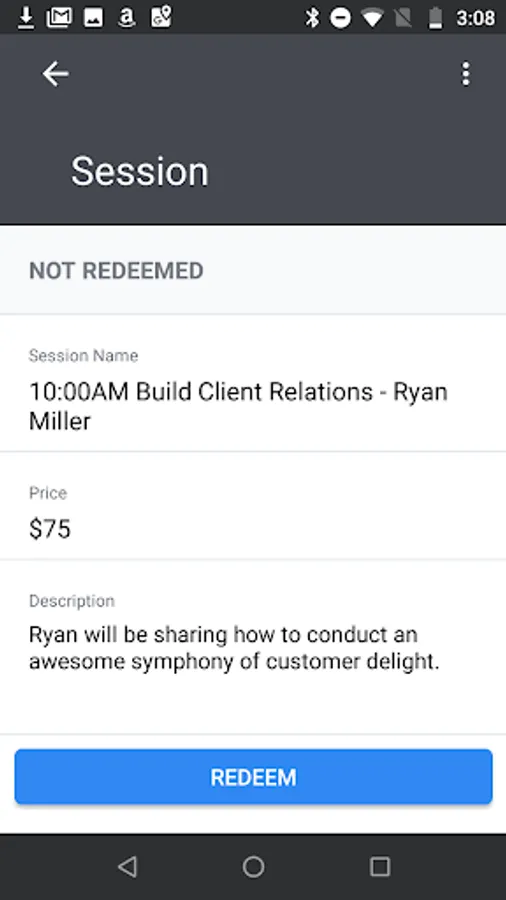 • Redeem Merch and Sessions: Redeem purchases and check-in people into sessions.