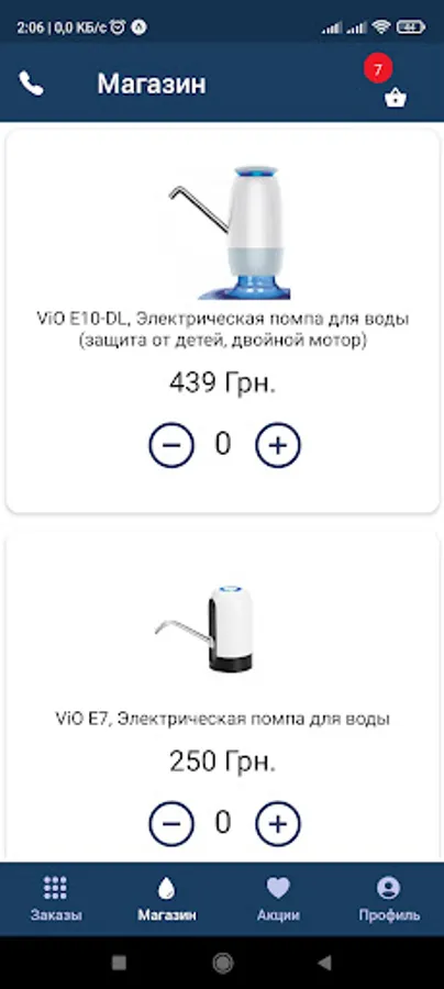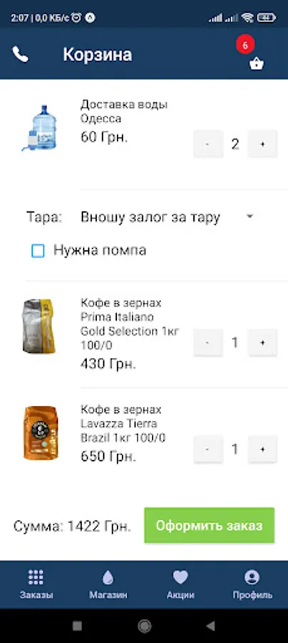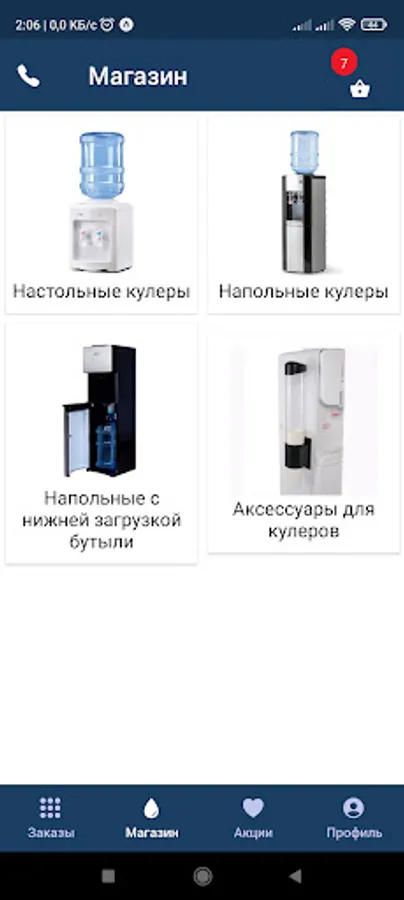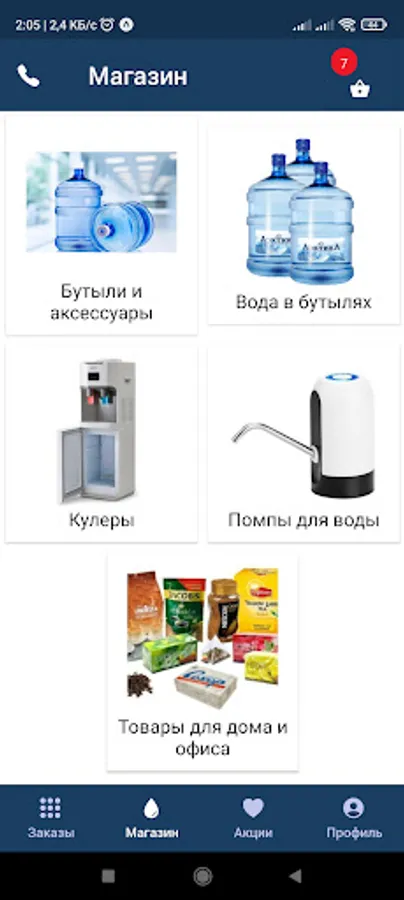 - Catalog of bottled water and additional products (tea, coffee, sugar, pumps, coolers, etc.)