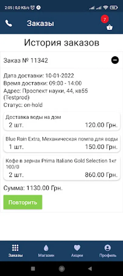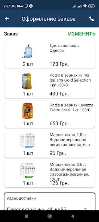 - Client authorization and a single personal account with the company's website https://vodaodessa.com/
