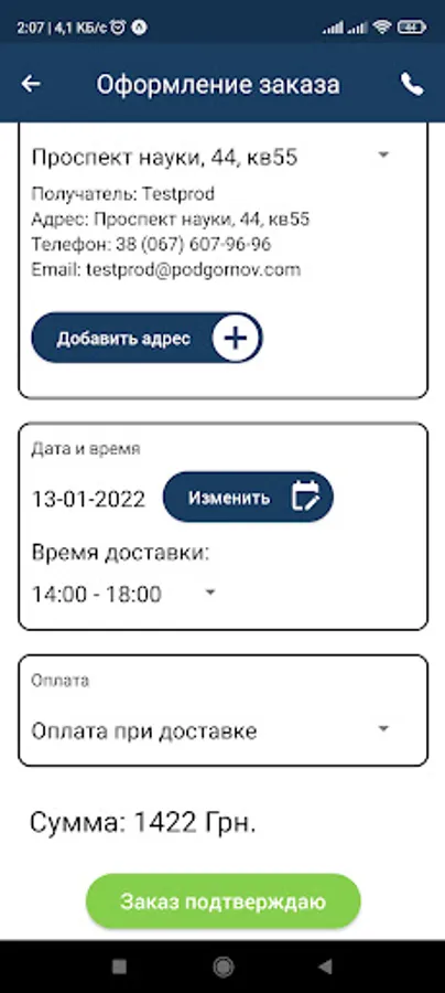 - Checkout (select the date and time of delivery, select and add a delivery address)
