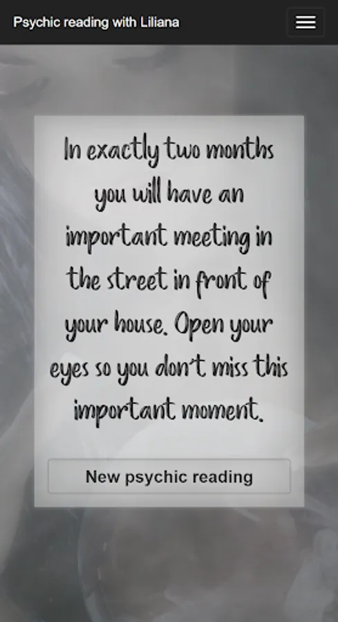 All you have to do is to touch the crystal ball on the screen of your device to have immediate access to Liliana's psychic readings. Expect some unexpected revelations about your future.