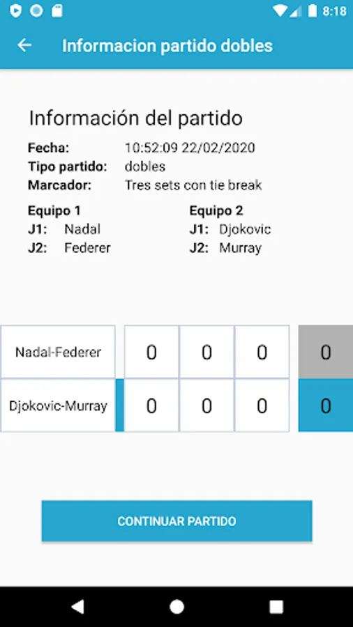 - Possibility to pause a match and resume it later without losing the scoring information.