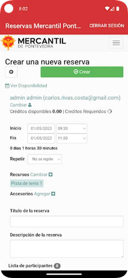 Reservation system of facilities for the Mercantile and Industrial Casino of Pontevedra. From this application you can make the reservation, management and consultation of the facilities of the Mercantile and Industrial Casino of Pontevedra.