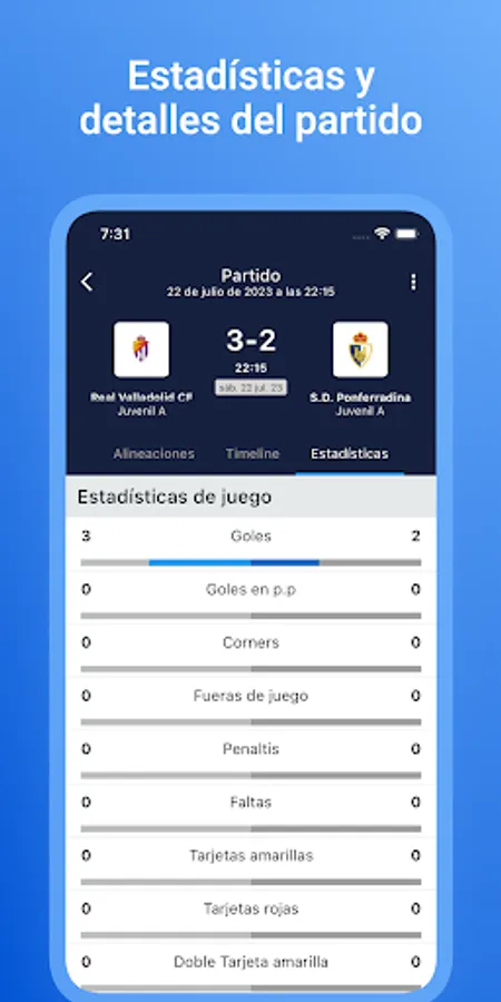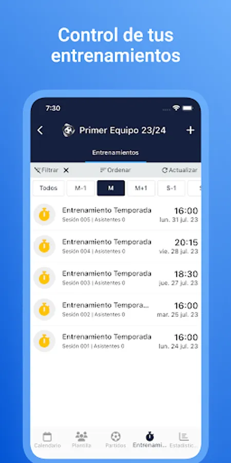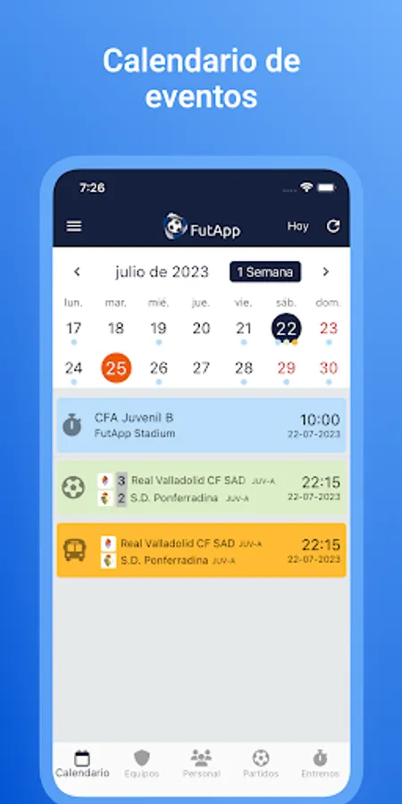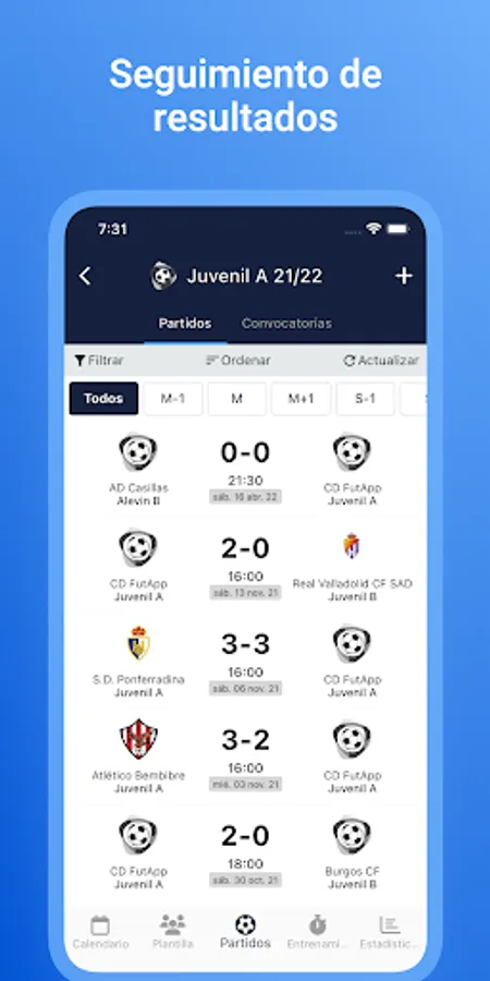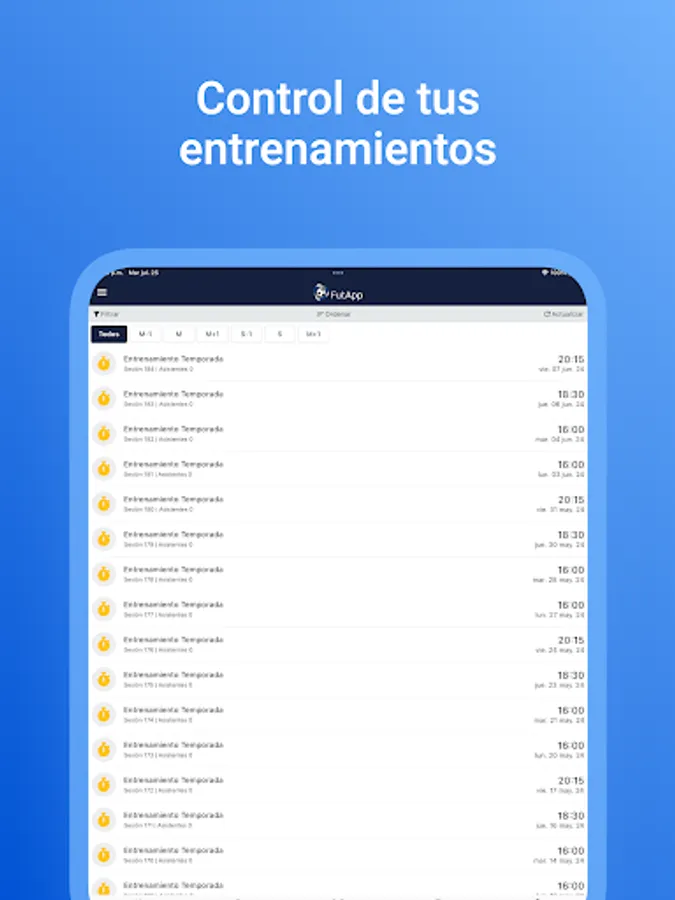 Training planning has never been so easy. FutApp offers detailed control of exercises and sessions, allowing you to design personalized and efficient workouts for each player. In addition, record events in real time during matches, keep track of results and access detailed statistics for comprehensive performance analysis.