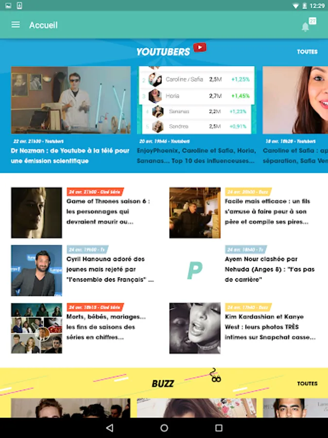 With notifications, you can be alerted when an article is published on your favorite subjects (celebrities, film, series, tv, youtuber).