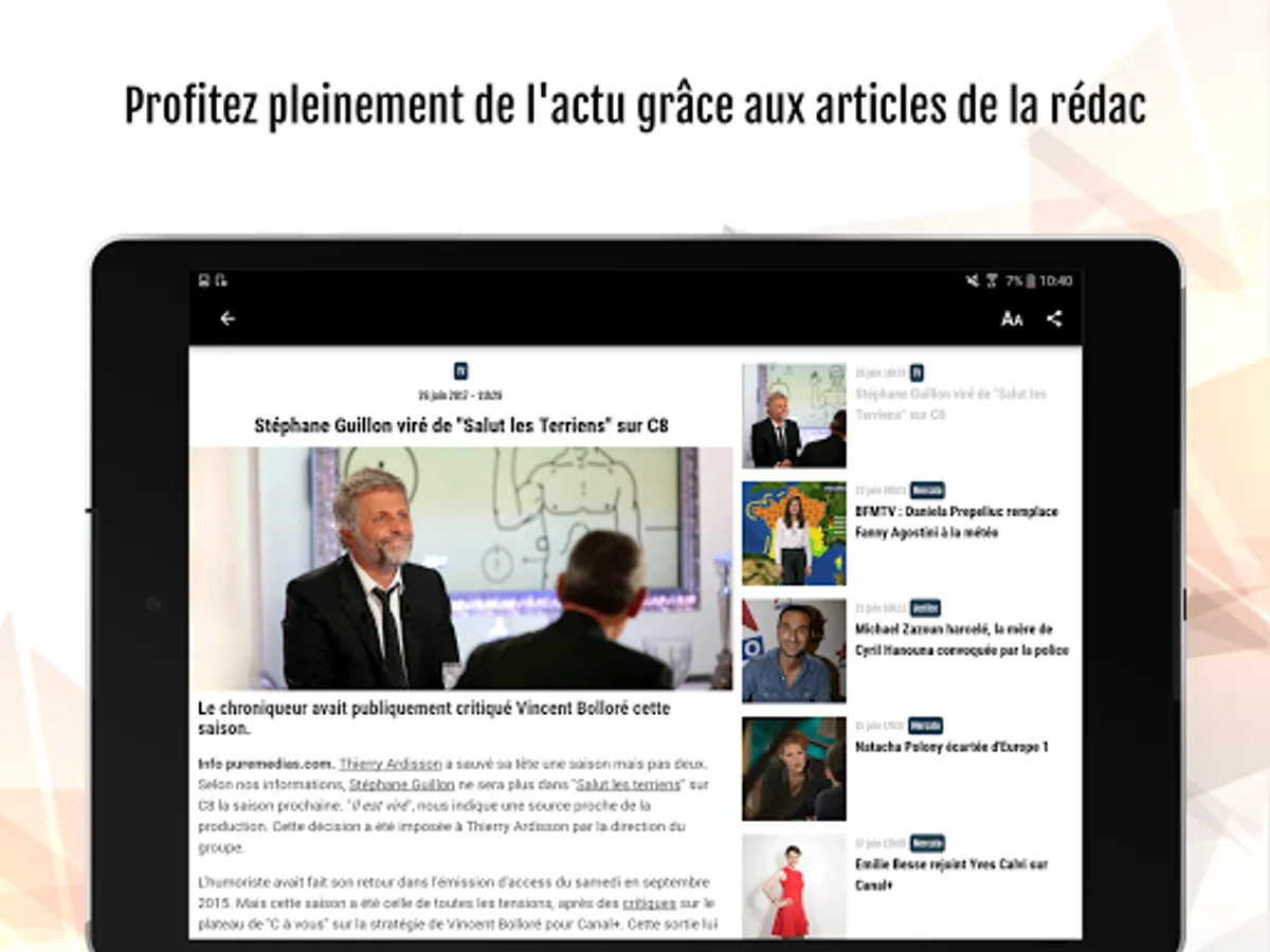- des interviews exclusives des personnalités qui font l'actualité média et TV