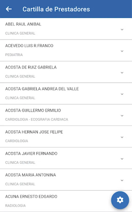 • Provider list: allows a quick and intuitive search for providers, by name, specialty and type (scheduled or emergency care on call), according to a selected area.