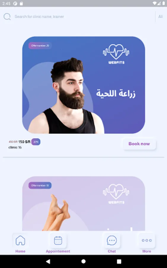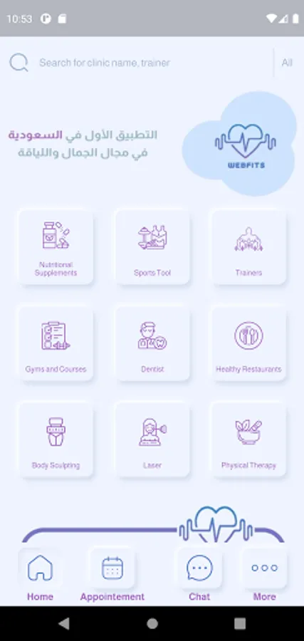 An application at the level of the Kingdom of Saudi Arabia and the Middle East and brings together everyone interested in beauty, health and sports offers with the best clinics, centers and trainers