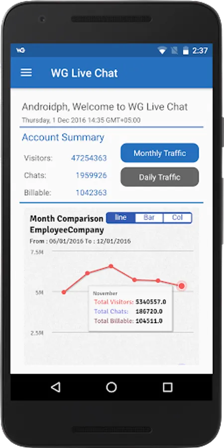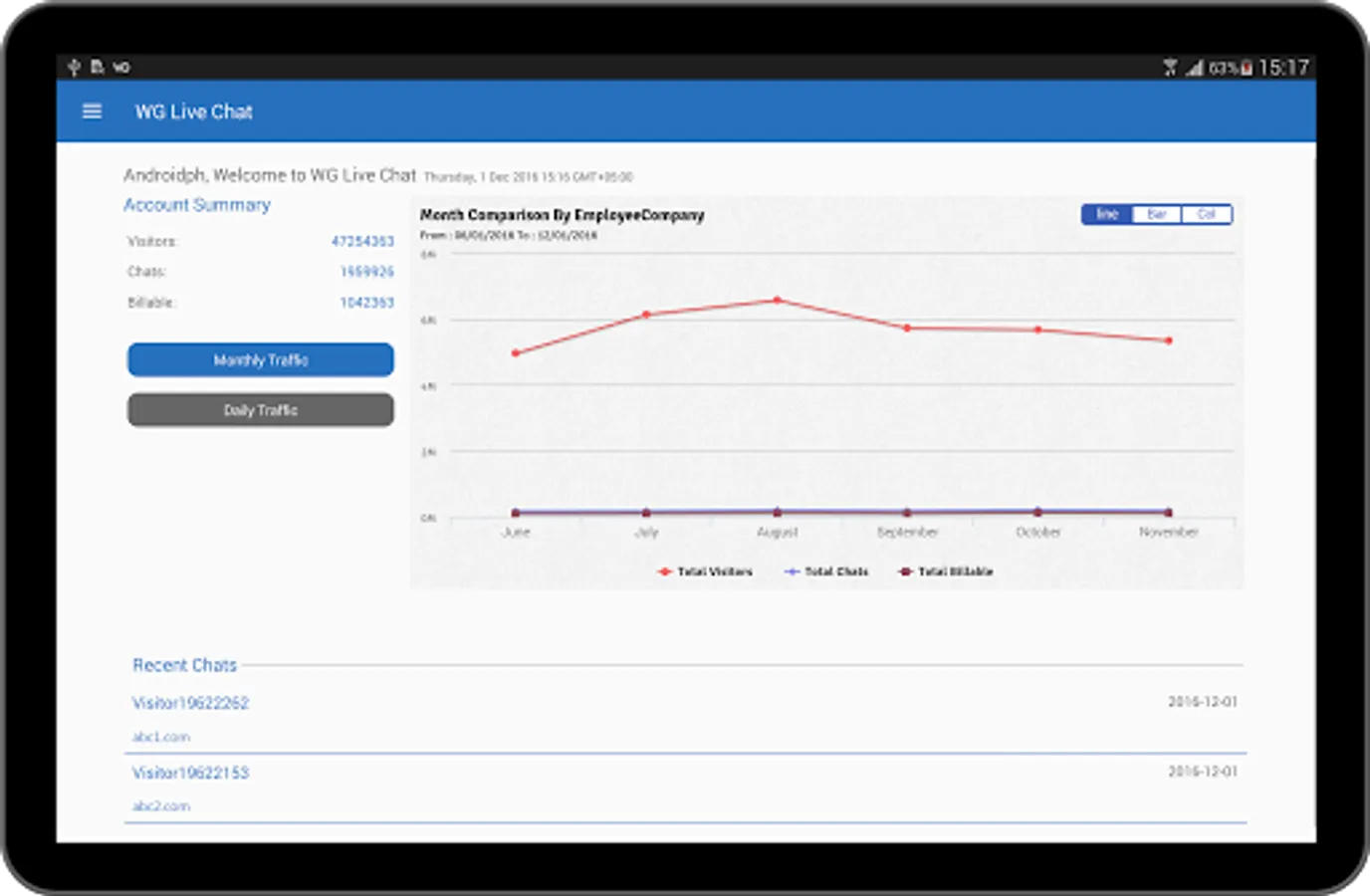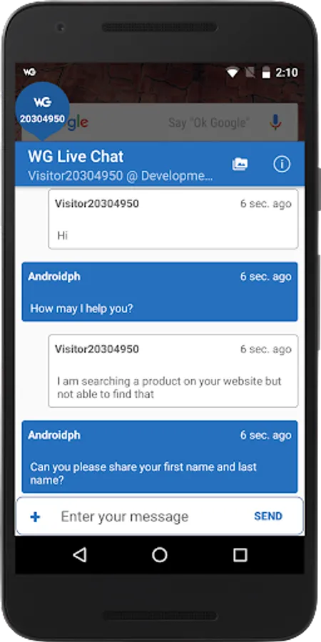 WG Live Chat Software is an instant and hassle-free way for businesses to connect with online shoppers without any fuss or lengthy wait-times. WG Live Chat Software legitimately stacks up against real-life customer service with which customers can be greeted and assisted just like in a brick-and-mortar store. Responses through email or phone call are mostly laggard and entail lengthy waits, but with WG live chat software application, you can be available 24/7 to assist customers with their queries from your android cellphone. The fact of the matter is that online customers run into dead-end all the time while scouring web for a decent purchase and you can’t sit in front of your laptop or desktop all the time to assist online customers. The number of buyers can easily plummet if there is a lack of assistance on company’s website. However, WG Live Chat Software app allows customers’ a quick-access to you for instant solutions with just a few keystrokes from your android mobile phone.