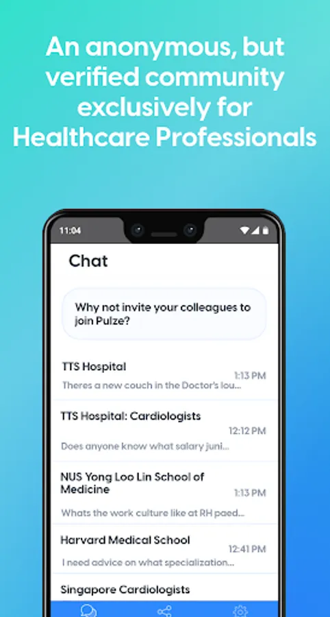 Pulze is an anonymous, but verified community app exclusively for licensed healthcare professionals. Chat anonymously with your colleagues, alumni or fellow professionals in closed chatgroups, knowing that all members have their professional identities verified.
