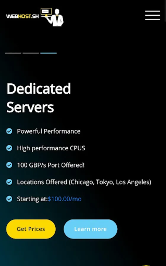 Webhost.sh provides secure and affordable server and web hosting, our services are directed towards small businesses and startups. Our services are set up in a way that our clients have access to quick and easy support, with security being one of our top priorities, our clients are able to spend more time on their business, and less time on worrying about all the technicalities of running a server or website. Our staff is experienced with Website Design, Server Management, Cyber Security, & SEO Optimization.