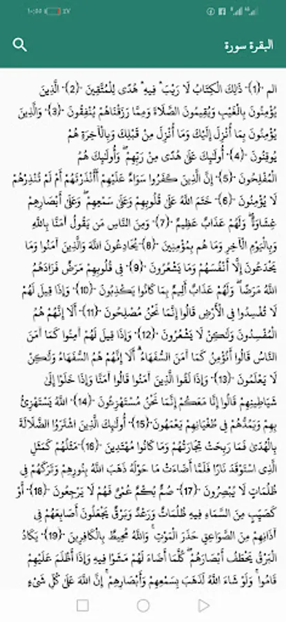 The Holy Qur’an is complete without an Internet connection, and it is completely identical to the paper Qur’an, in addition to the search feature, the seal prayer, the ability to put a mark, the index of the fence, the index of parts and parties, and the ability to move to any page. Nightly, and in the event that the program is closed at a specific page and opened again, it will automatically go to the page at which it was closed, in addition to the possibility of reading in horizontal and vertical modes in a clear font and the background color of the pages is comfortable for the eye