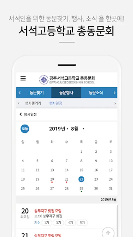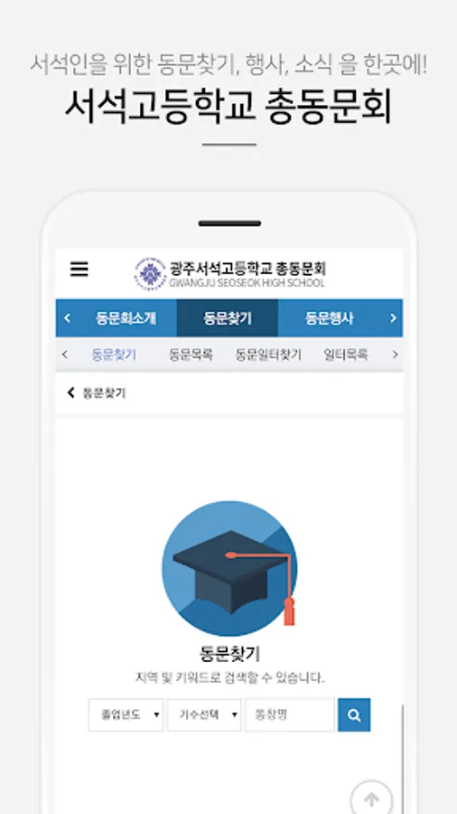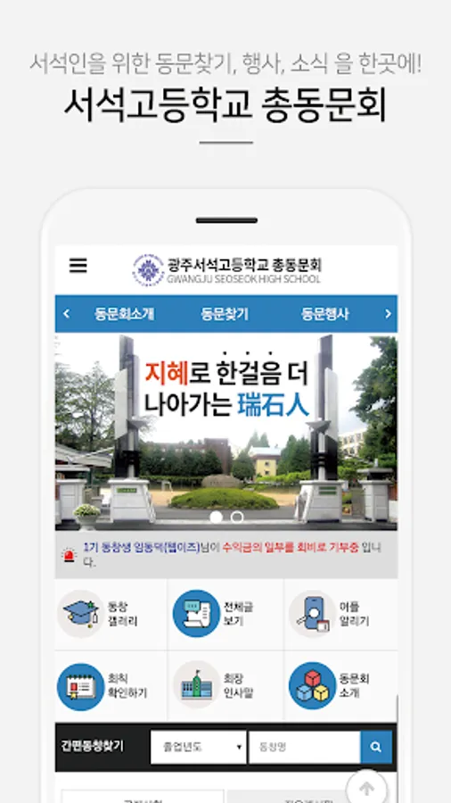 Introducing the new Gwangju Seoseok High School Alumni Association app.