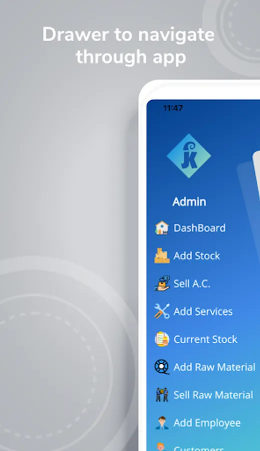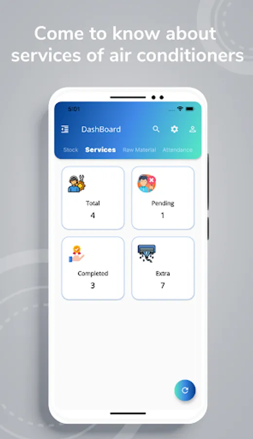 This app manages all your customer details, stock, raw material, employees, service of sold air conditioners, and after completion of service, we get their review and feedback.