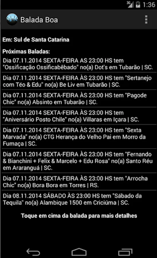 Balada Boa is an application for you to monitor the ballads that will happen in the coming days in your area. Bringing information from the name of the ballad, the house where the same will happen as well as date, time, day of week and the city.