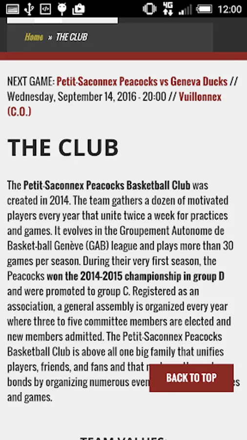 The Petit-Saconnex Peacocks app is a must-have for all players, fans, sponsors ... it allows you to get the latest information, check the schedule and see Where games Will Be Taking up, check the team composition and statistics, as well as interact on the website or shop on the online store!