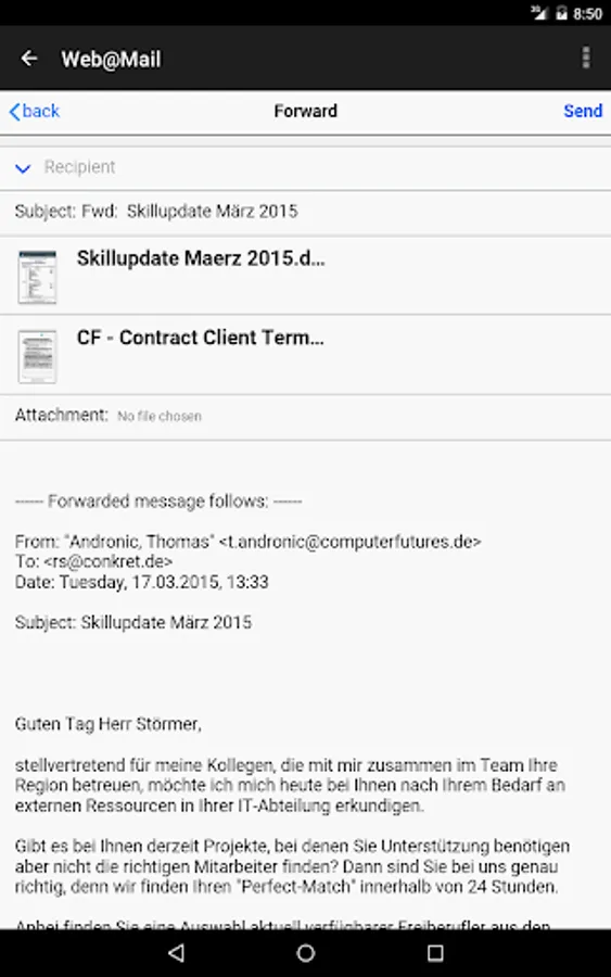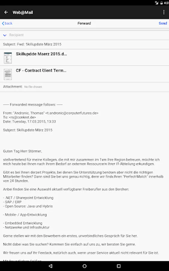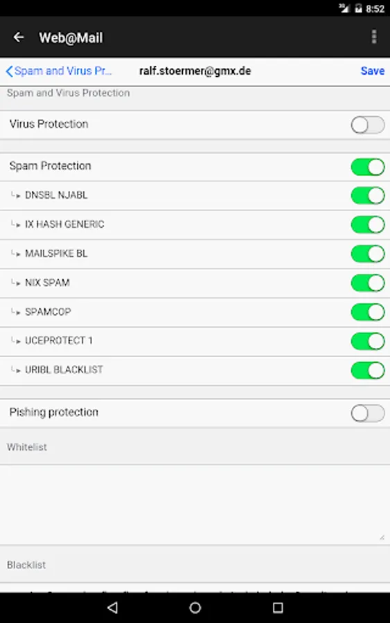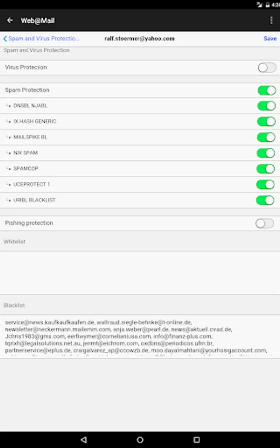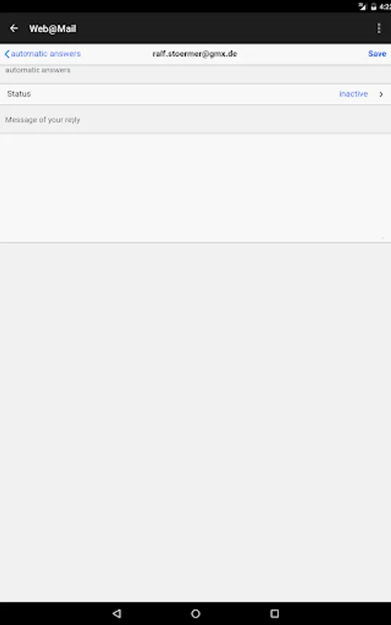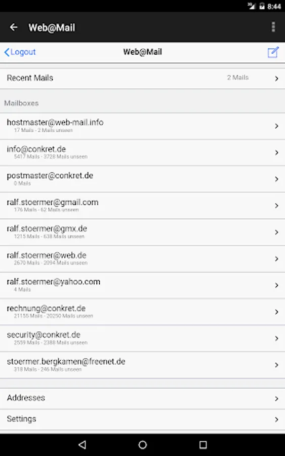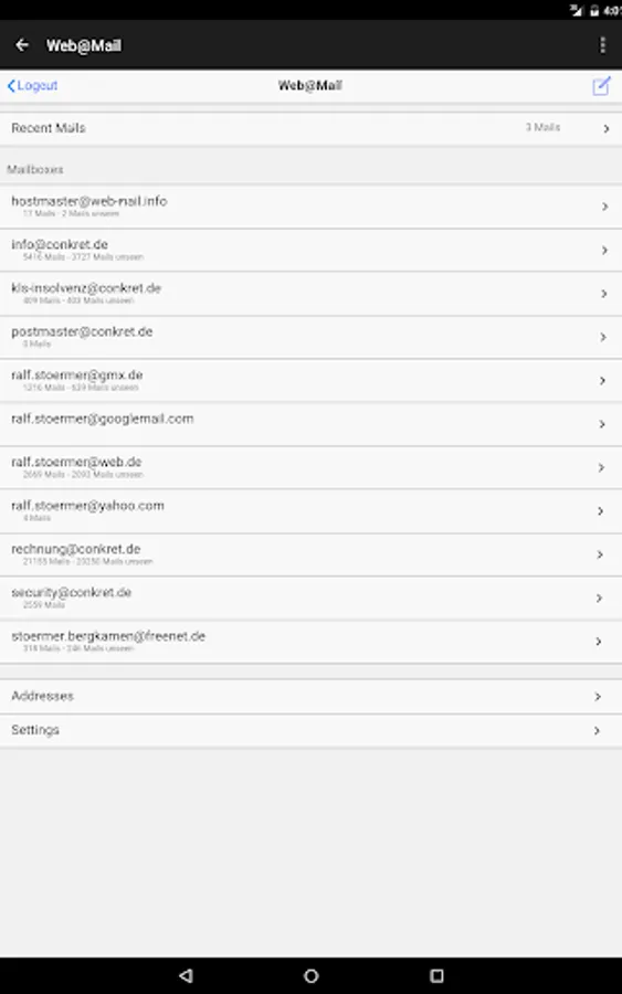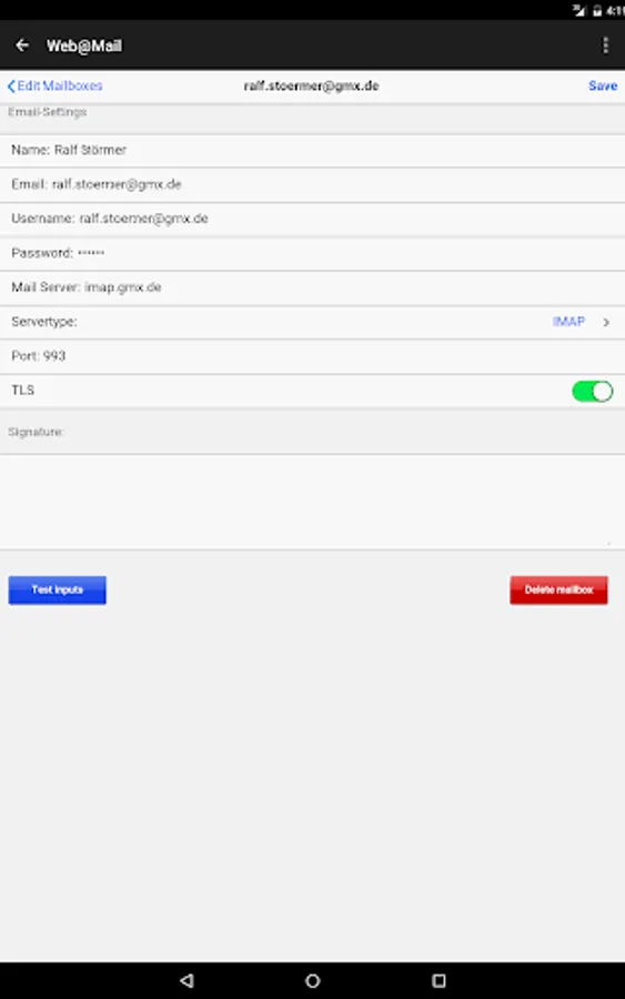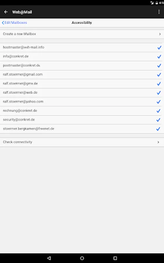 Web@Mail is a secure, independent and advertising-free mail service (which you can use with a browser on any device without this app). It offers direct access to any mailbox without any installation effort and without data-consuming synchronization of the mailbox by working directly with your mailserver - so you don't need to change MX-records for your domain.