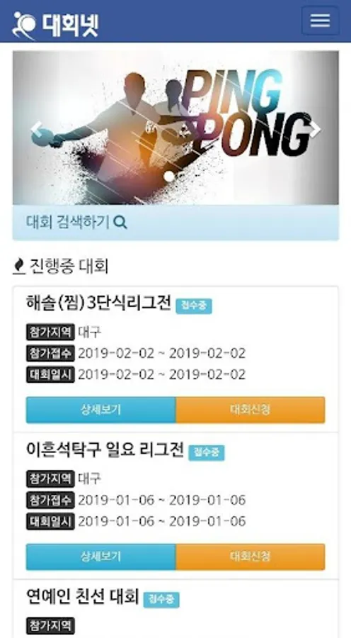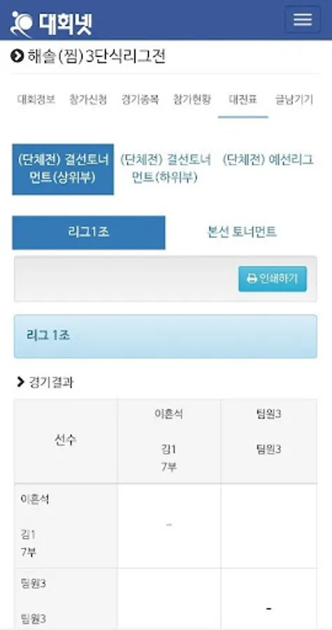 If you join as a member, anyone can easily register a table tennis tournament on mobile, apply for a tournament, and promote the tournament. You can see results in real time as you progress.