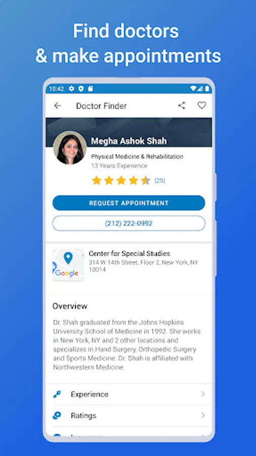 • Doctor Finder – Find the closest doctors and specialists based on your current location or search by city, state or zip.