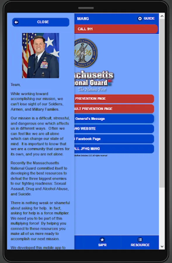 This is the official Massachusetts National Guard Crisis Management and Prevention mobile application.