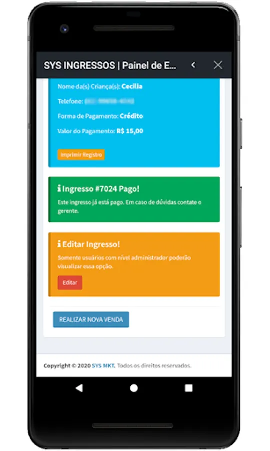 - Registration and editing of users for system management, with access levels (Attendant / Operator, Supervisor, Administrator);