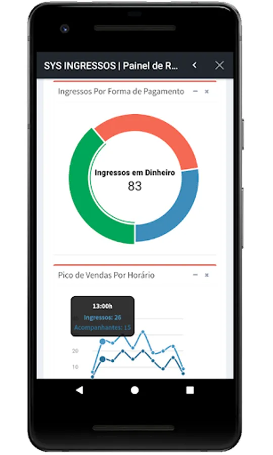 - Complete reports with numbers of coupons generated, performance per attendant, average ticket, graphics and export results;
