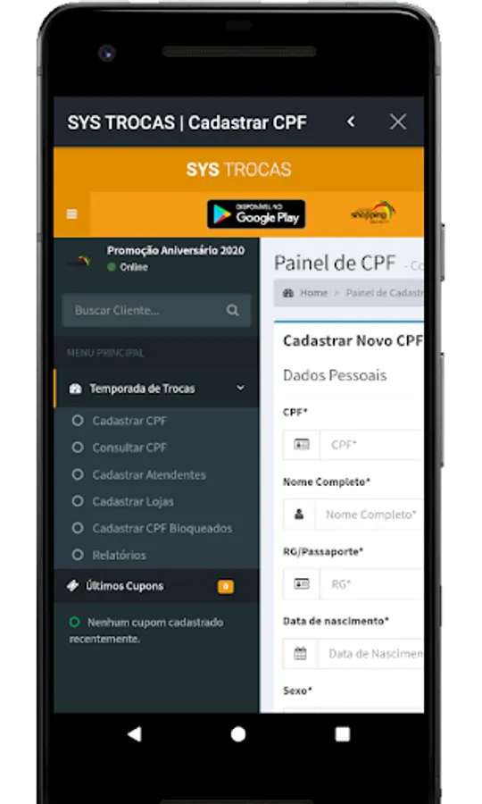 - Complete reports with numbers of coupons generated, performance per attendant, average ticket, stores with higher sales, graphics and export results;