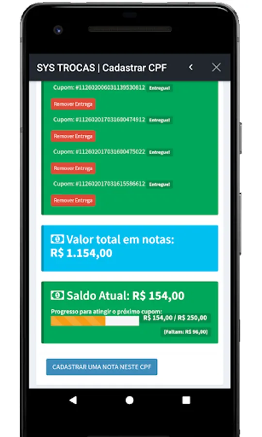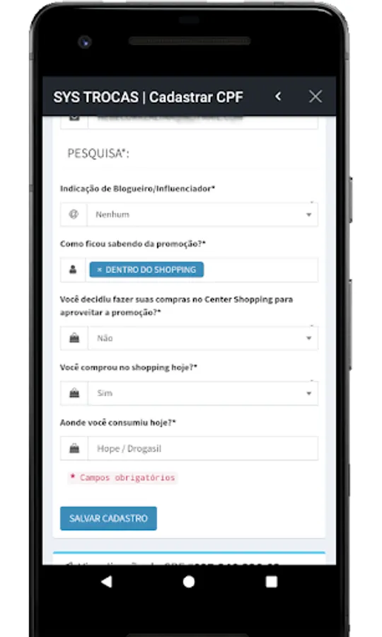 - Register of blocked customers / CPF's (customers who cannot participate in promotions);