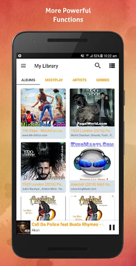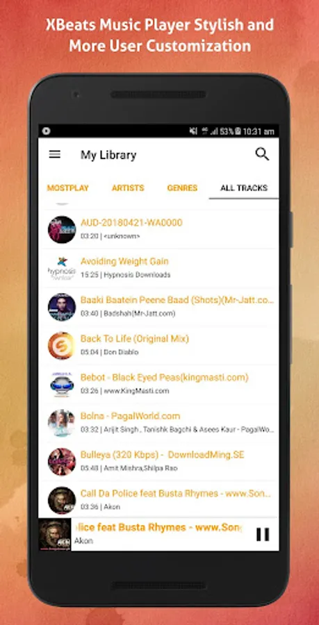 It is an advanced music player application that enables playing music on Smartphone. User can play music by using this app and listen songs or albums of his choice. One can add songs or music albums to favourites’ list and display songs catalogues by categorizing albums or artists on screen.