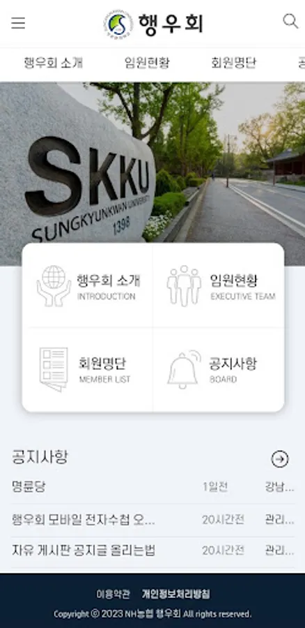 The NH Agricultural Cooperative Association is an organization composed of graduates of Sungkyunkwan University or graduate schools working for the National Agricultural Cooperative Federation and its subsidiaries.