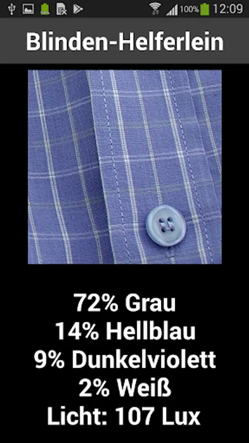 This is used to take a photo with your smartphone camera and evaluate its color values. The colors found are then announced to you with the corresponding color names in percentages.