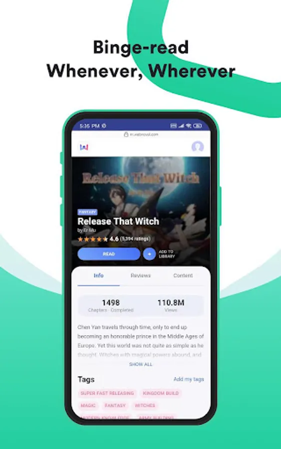 ● Enjoy legal translation copies of worldwide popular novels : ‘The King's Avatar, ‘Library of Heaven's Path’, ‘Release That Witch’...