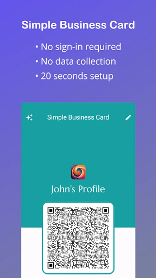 📇 Effortless Setup: No accounts, no complications. Dive straight into creating your digital business card without the hassle of lengthy sign-ups.