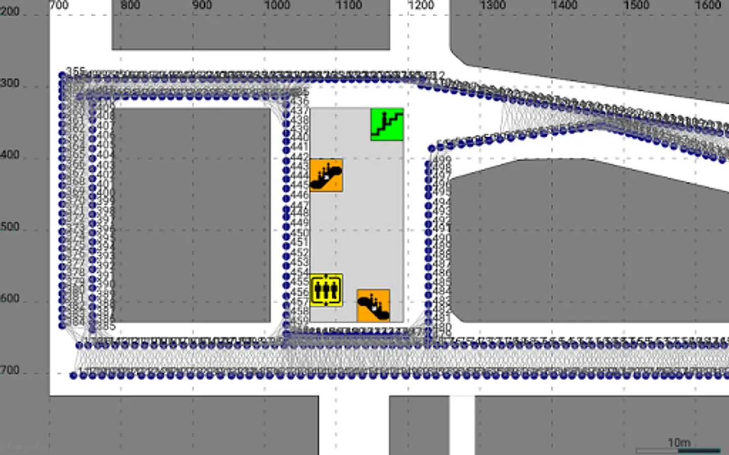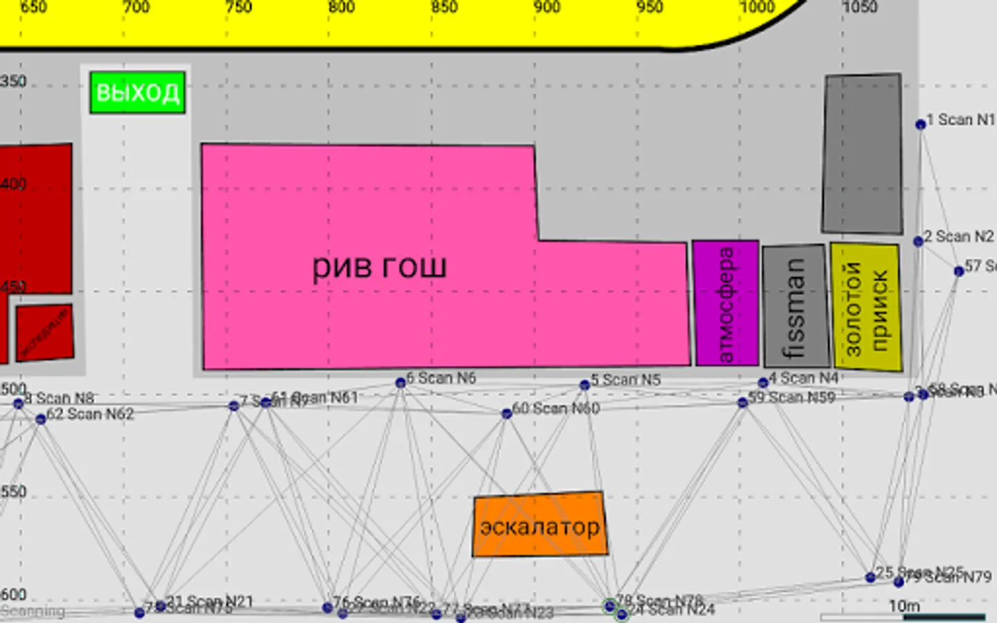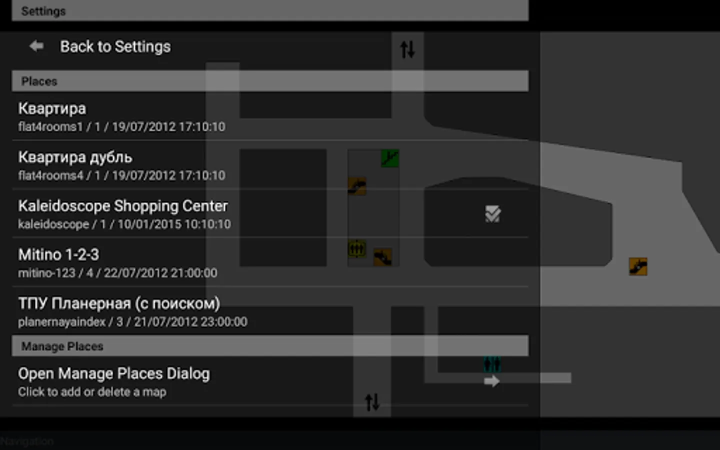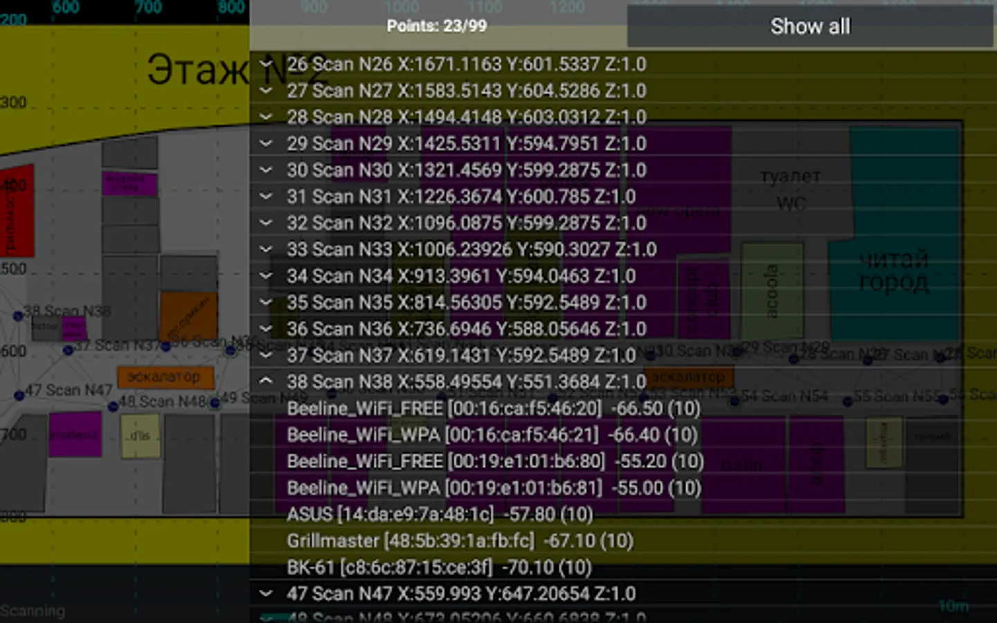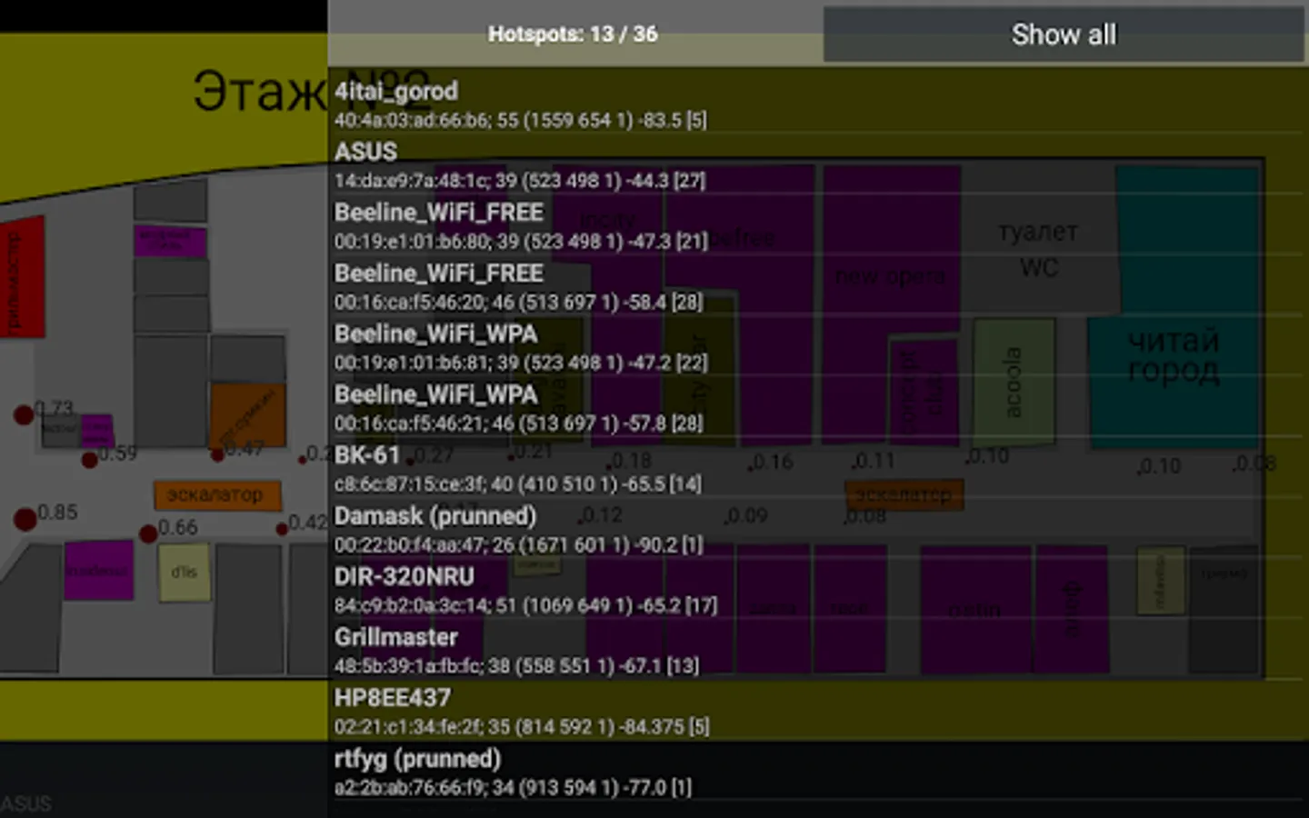 For every such place, WiFiLine uses a special map consisting of the place's floor plan and a set of WiFi signal measurements. WiFi hotspots, whose signals are used for position detection, do not have to be public hotspots. All what is important for WiFiLine is WiFi signals of existing hotspots measured at various points.
