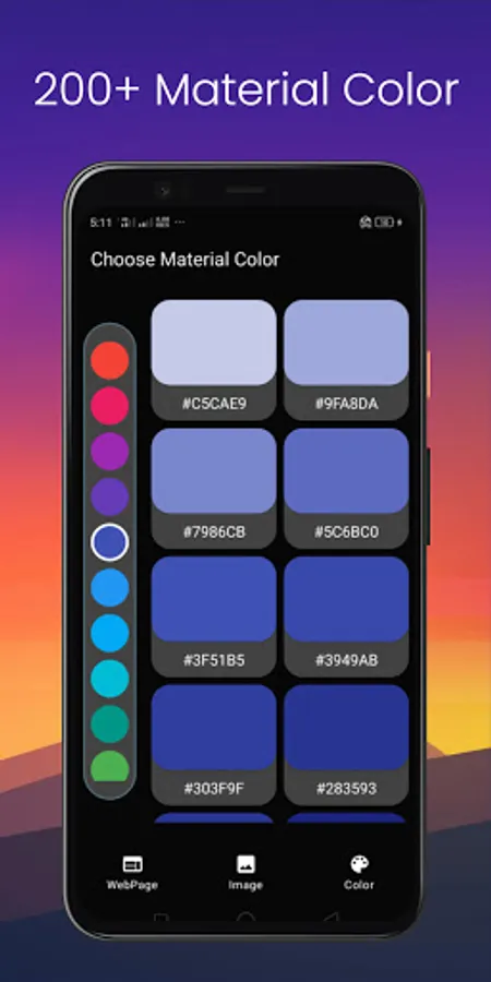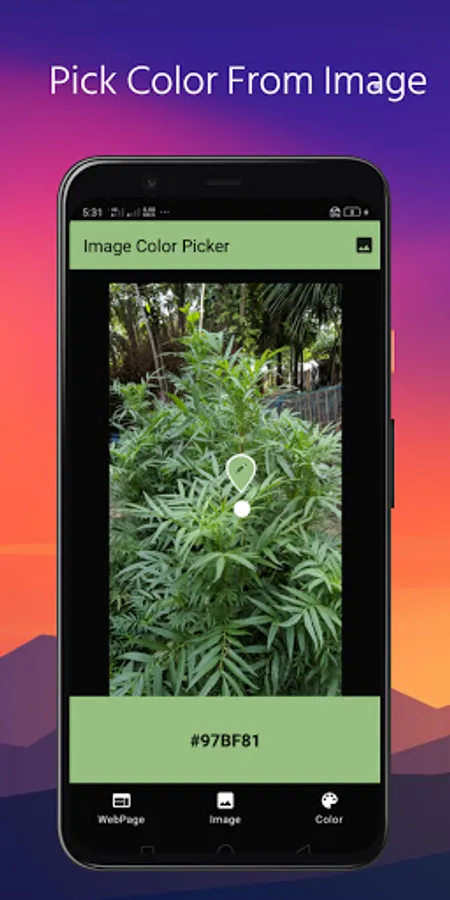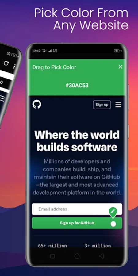 Browse any website and tap on color picker button then drag and choose your desire color press the color to copy