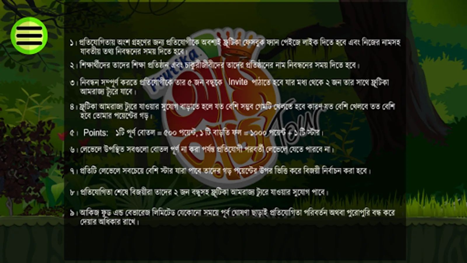 Play as much as you can to win daily prizes or better yet win the MEGA PRIZE and visit Frutika আমরাজ্য with 2 of your friends by AIR! But you must know the following rules-