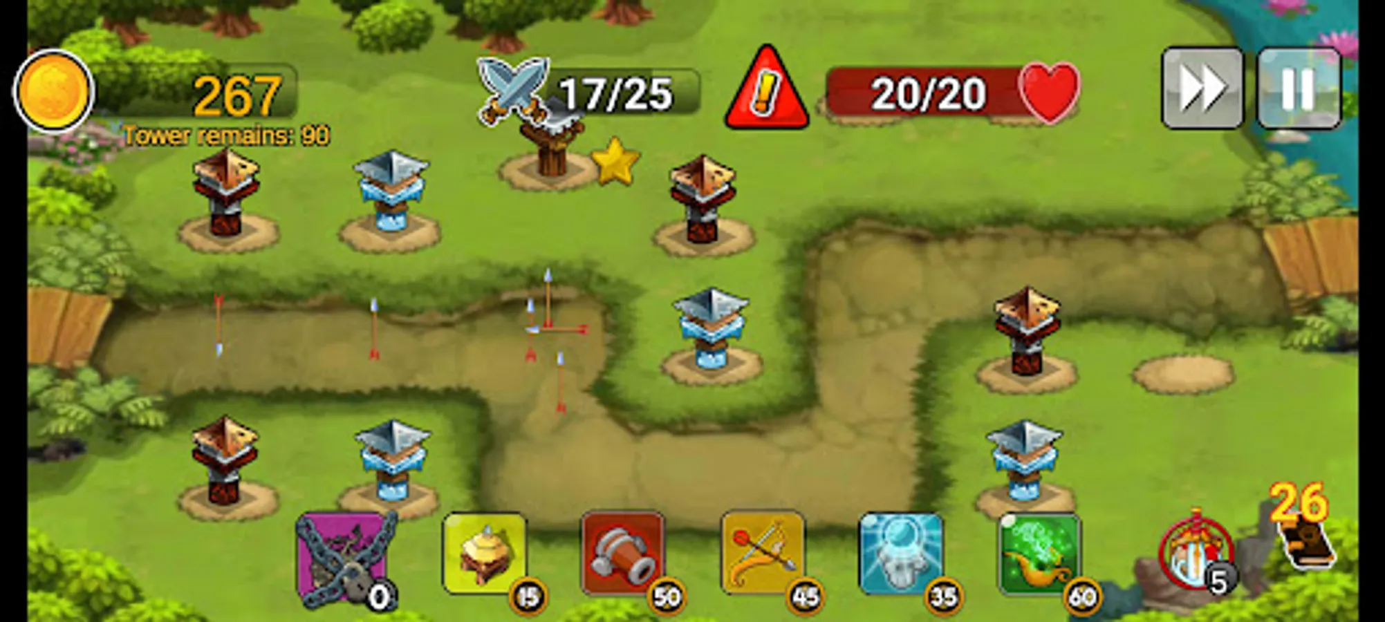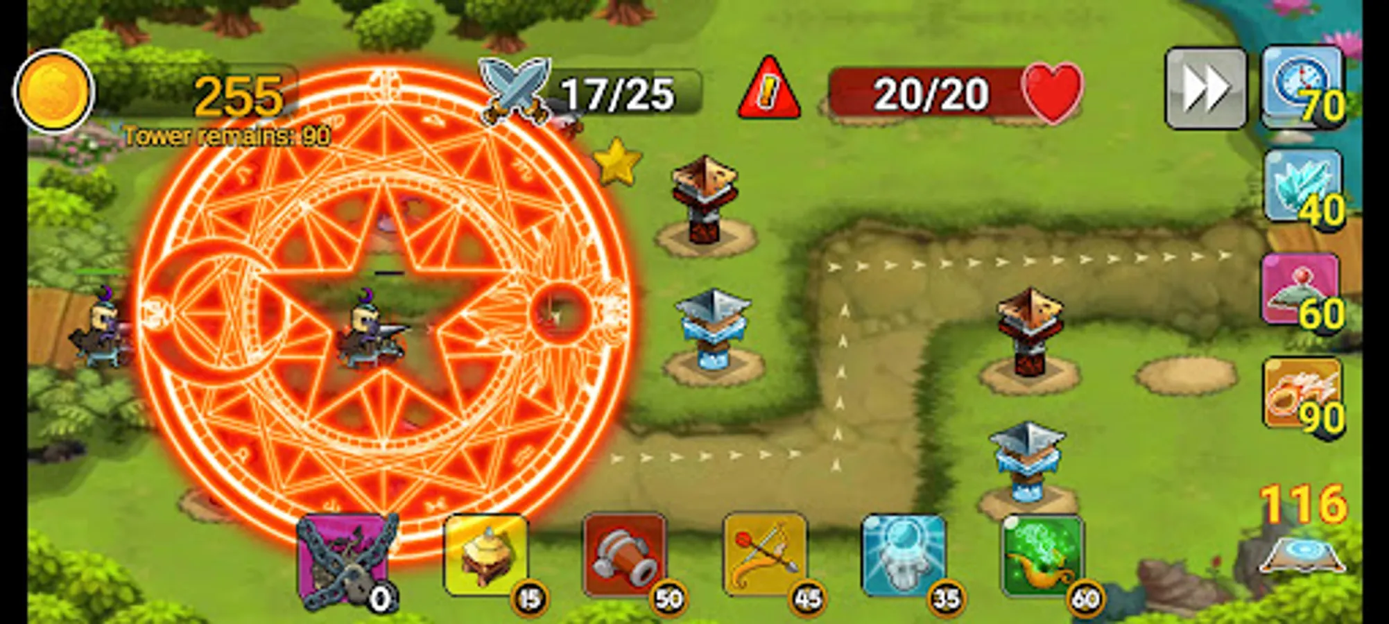 Avec une variété de tours à choisir, vous pouvez personnaliser votre stratégie de défense pour s'adapter aux forces ennemies. De plus, vous pouvez améliorer vos tours pour les rendre plus puissantes et plus efficaces. Il vous faudra réfléchir tactiquement et rapidement pour vaincre vos ennemis et défendre votre royaume.