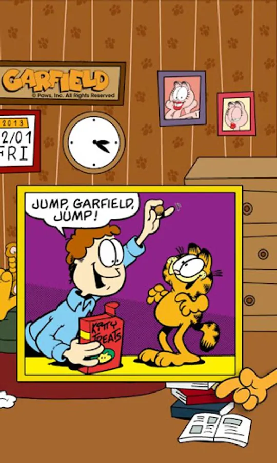 Tap on different items to see funny pop-ups! Boredom is not allowed when Garfield is around!