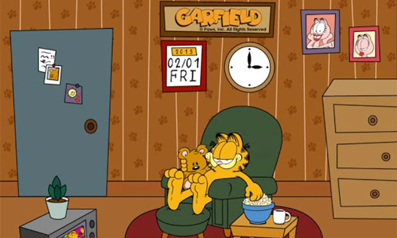 • The books on the floor will show classic comic strips from Garfield’s collection