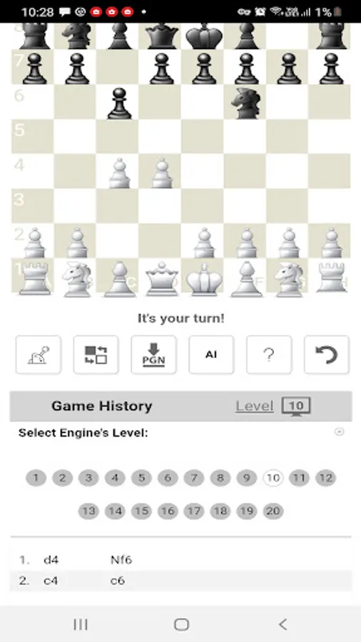 You can increase the level of difficulty from 1 to 20 and copy / paste the pgn for later study also.